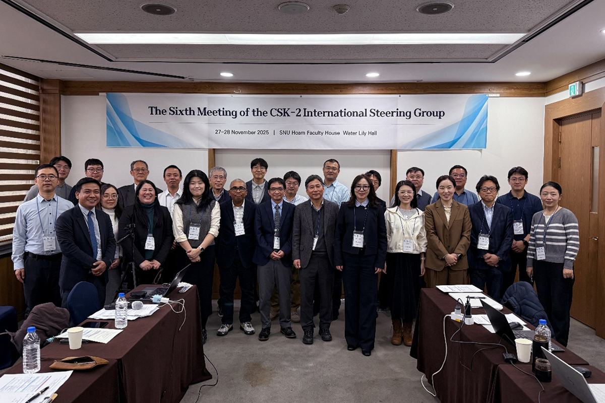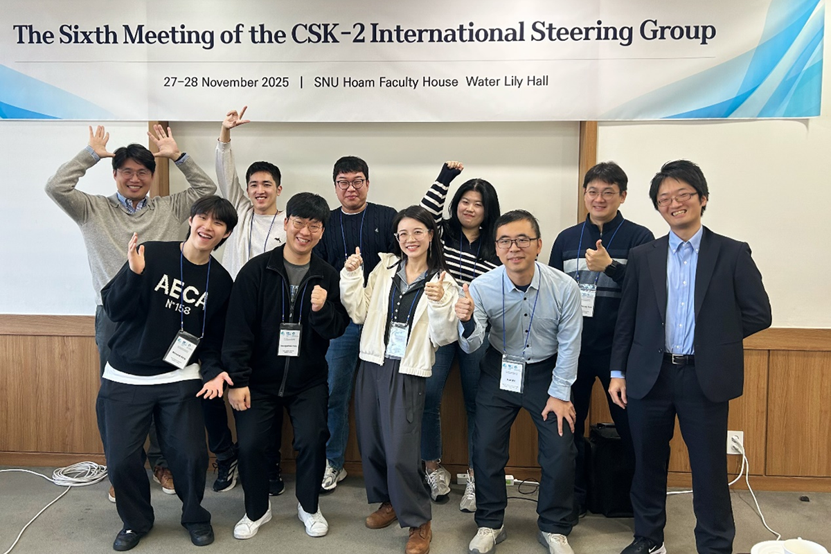 WPI-AIMEC Administrative Director Kentaro Ando (KA) and WPI-AIMEC Researcher, Prof. Baolan Wu (Associate Professor, Graduate School of Science, Tohoku University, BW) participated in the Sixth International Steering Group (ISG) Meeting of the CSK-2 program, held in Seoul, Republic of Korea, on 27–28 November 2025, where KA and BW co-chaired the sessions to review and coordinate international research plans and the session to facilitate discussions for early-career professionals, respectively.