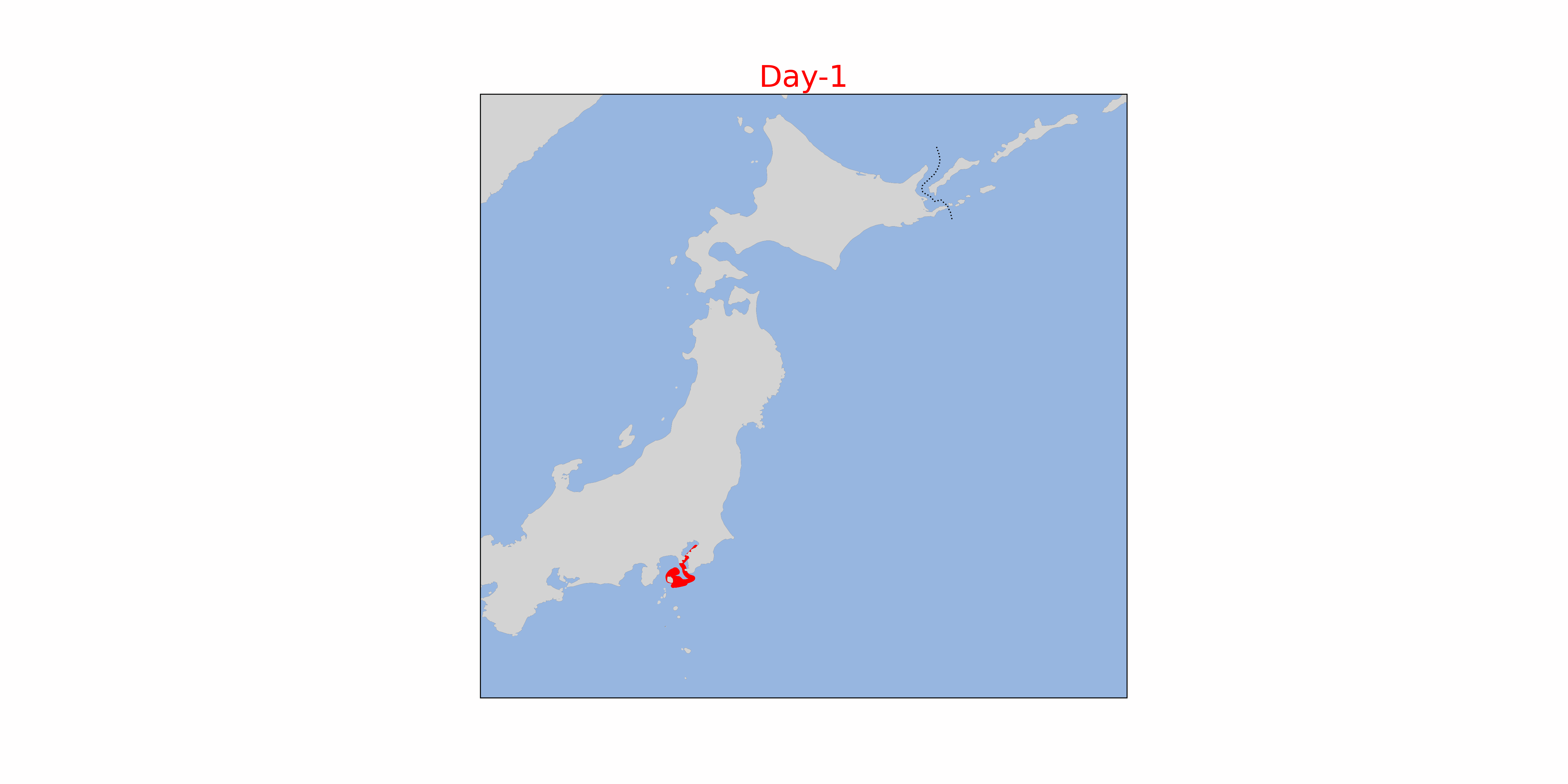 “I ran a particle simulation – which is like dropping bright red beach balls in the water, then making data-based estimations to track where they will end up days or months later,” explains Muhammad Izzat Nugraha, “We were excited to find that in our simulation, all the beach balls essentially made a trail from Sagami Bay up to right where we found the “crescent helmet man-o-war” in the Tohoku region.”